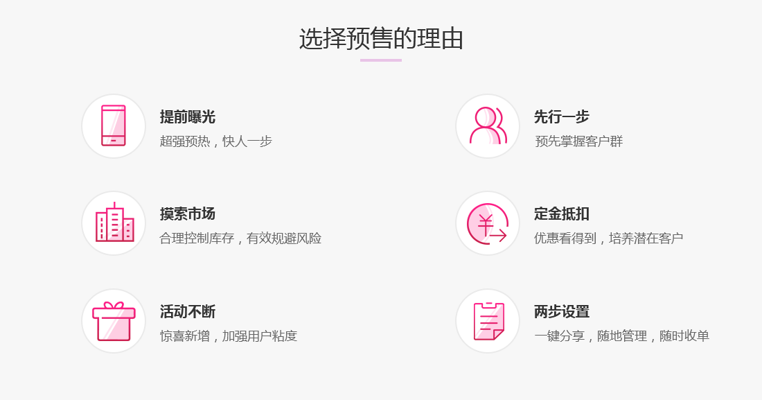 预售是一款买家预付定金即可享受优惠的营销工具,帮助卖家提前售卖产品,达到抢先占领市场,积累客户群体的显著效果。